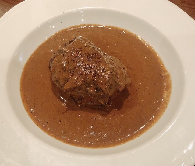 白金豚のローストは、写真でも分かる通りの絶妙な焼き加減で、ソースも美味すぎてパン泥棒です。