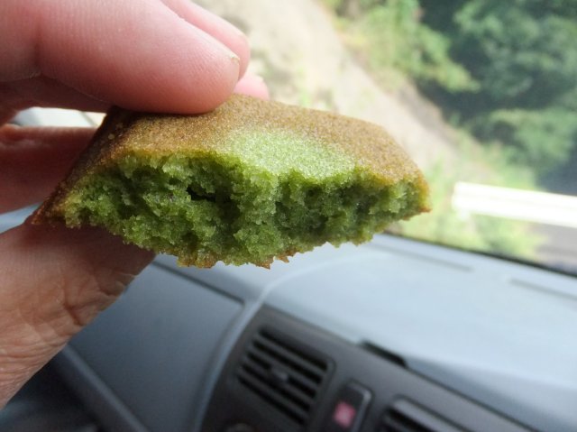 外側の淵がサックリとしてて中はしっとり柔らかく、中の餡はお茶の緑が綺麗で風味も良いですねぇ。