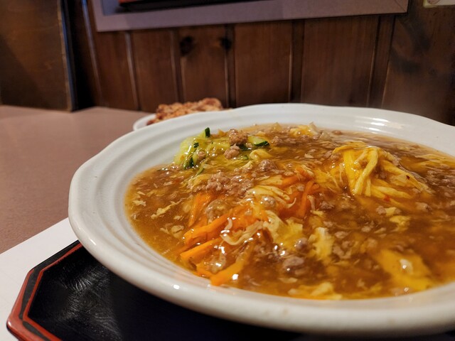 やってきました“ろんどん”は、トロミ具合が絶妙な卵とじに唐辛子も