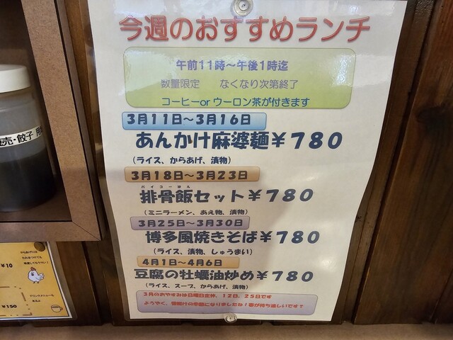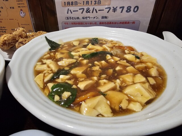 この日メニューより、着席と同時にいつものおすすめランチの今回は"麻婆丼セット(780円)"といつもの"から揚げ単品(220円)”をお願いしてみます。