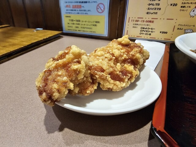セットの方のから揚げは2個でそのまま食べても薄めの皮と中に入り込んだ程良いタレの染み込み具合がソーグー。
