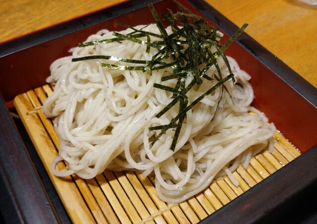 夏にこの店を知り口コミを見て気になっていたこの店に行って来ました。駐車場は店の前に8台のスペースがあります。外観、通路はまるで料亭のような感じで入りづらい感はあります。店内はゆったりとした空間でとてもそば店とは思えない雰囲気。奥のテーブルに案内されました。メニューはほぼ1000円以上のメニューばかり。昼のランチはありませんが昼のお得メニューはあります。そばの大盛は出来ずに追加ざるとなるらしく昼のオススメメニューとあった桜えびの半かき揚げとざるそばのセット(1050円)に追加ざる(600円プラス)を注文しました。そばは十割と二八から選択できます。そば茶が出され待つこと5分程でメニューが登場。いかにも高級店?で量が…。食べ方までメニューに書いてあり…。しかし、何もつけずにそばをひとすすり。冷たくキンキンにしめられたそばの甘味と香りがわかり、極細なのにしっかりとしたコシがあるそばは美味い。続いて露につけて食べるとまた違う味。辛めの露です。薬味はネギとわさびがほんの少しですぐに完食してしまい追加ざるに。そばは食べ終わってから追加を茹でてくれます。桜えびのかき揚げは厚さ2センチ位。半かき揚げですがこれで十分。衣は淡雪のようなサクサク感でどっかの桜えびのかき揚げを売りにしている店と違い油がいいからくどくなく、ほんのりかかった塩味が良かったです。追加ざるも露と薬味も追加して持ってきてくれるので露が足らないこともありませんでした。最後はそば湯でしめましたが最初の客という事でかなり薄めのそば湯となりましたが。
