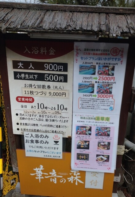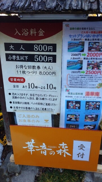 ※営業時間 湯元 湯華の郷10:00~22:00(受付~21:30)精進山菜料理湯華庵11:00~21:00(オーダーストップ20:00)