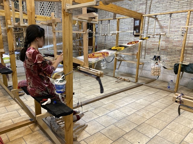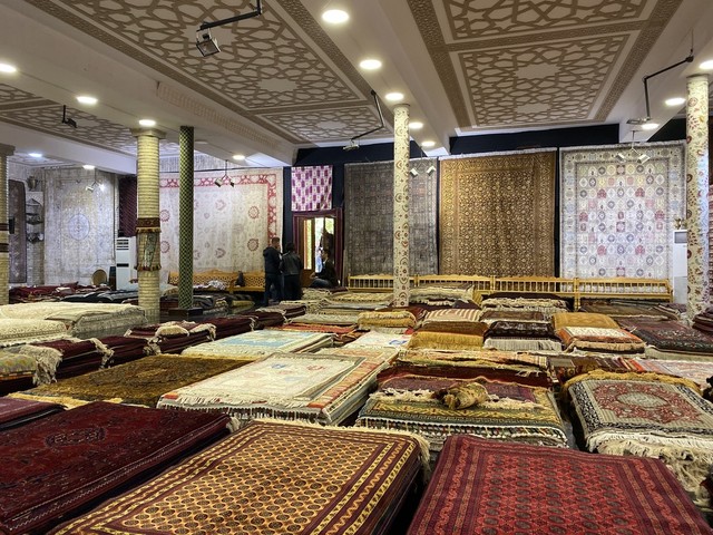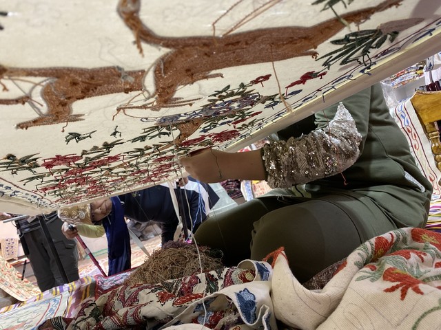 栗の木やザクロなどの天然の草木で染められた絹糸で、伝統的な柄が織られる絨毯。