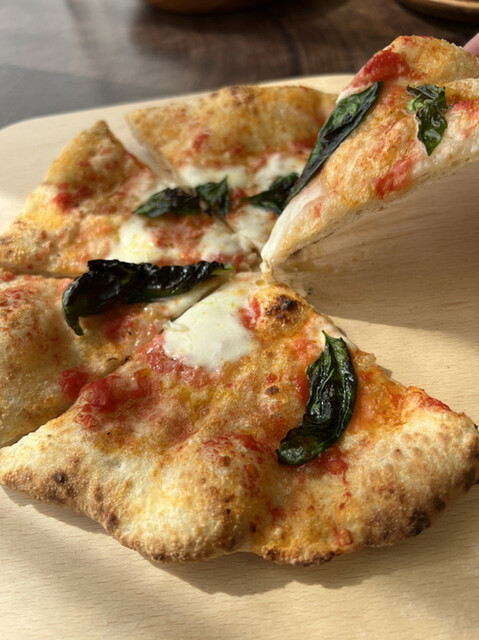 自家製トマトソースをそんなに使ってないよう見えますが、凝縮されたトマトの旨味にクセ無い白糠町酪恵舎のモッツアレラ、只今(冬なので)室内鉢植えされてる、もぎたてバジルの風味良く、薪のカヲリも良い感じ♪