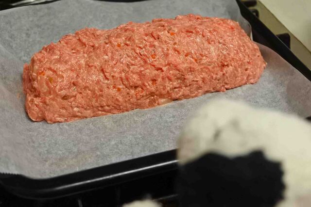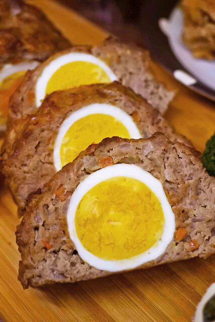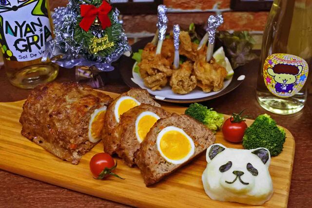 ミートローフはゆでたまご入りにしたよ。生地にはたまねぎ、