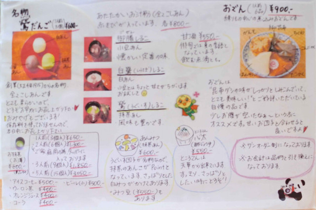 鶯だんごは、白あん、小豆あん、抹茶あんの3種類で、