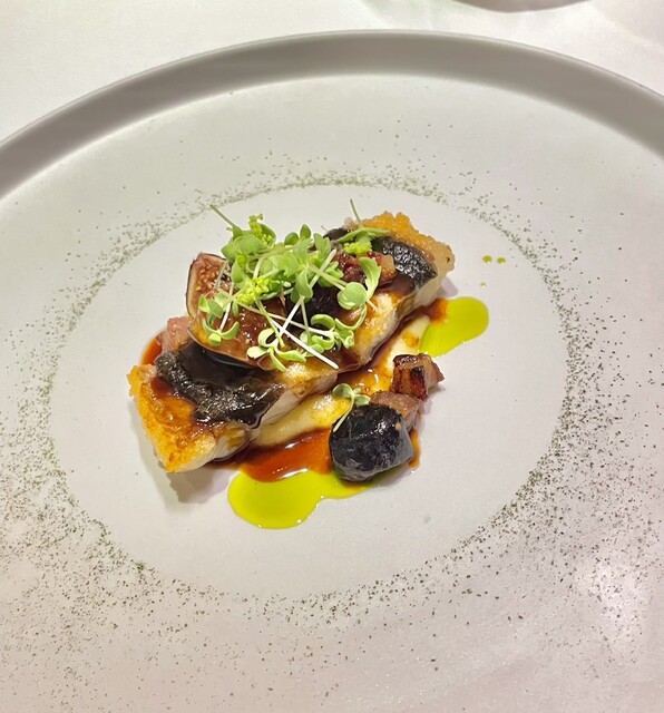 ハーブの甘酸っぱいソースと熟成したアジ、桃の甘酸っぱさのバランスが良い塩梅。