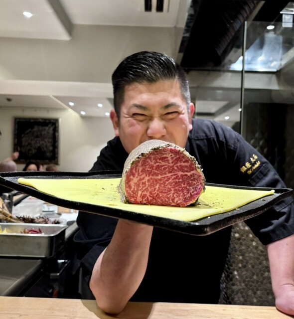 飛騨牛のももの部分を塊のまま1.5−2時間かけてじっくり焼いたもの。中は赤みが綺麗。