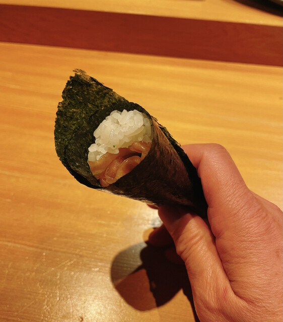 富山県のマグロ漬けを炙ったネギトロ巻き。