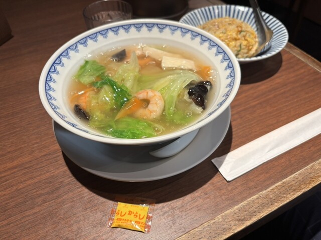 天津飯が気になっていたのでお邪魔しましたが、辛ミソ豚骨が気になり、セットのハーフ天津飯。