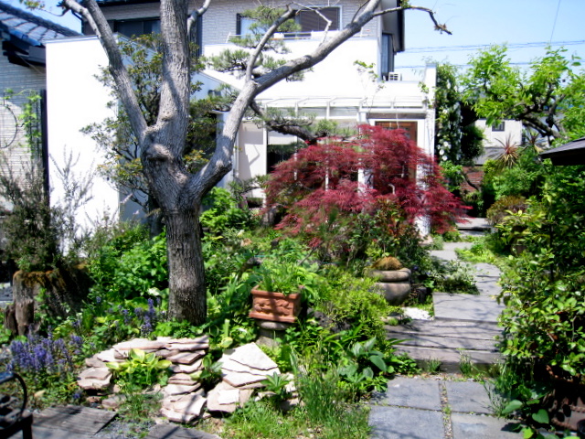 あえて自然な感じで、季節の花や樹木が点在するお庭