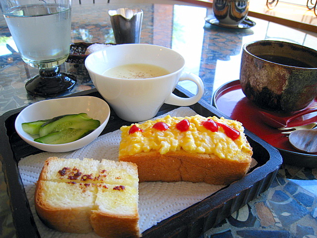 モーニングは片岡鶴太郎作のオシャレなトレイに乗って登場!