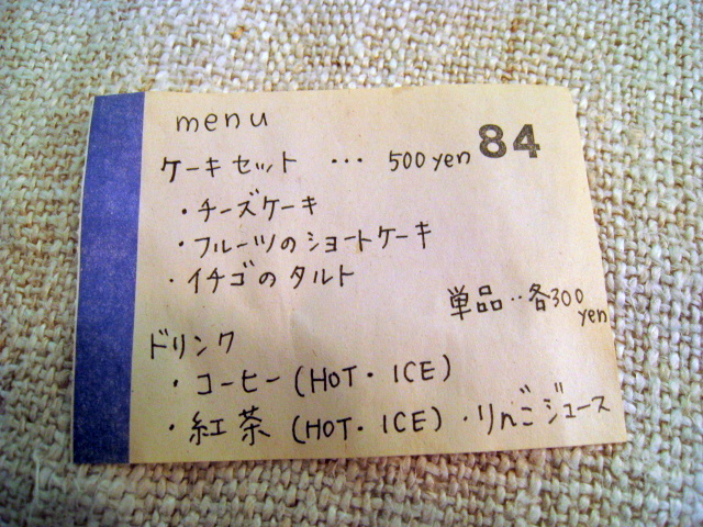メニューはケーキ3種類、ドリンク3種類
