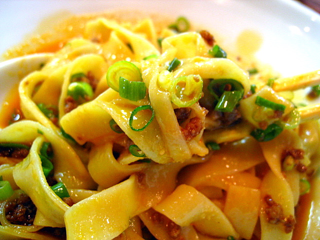 この刀削麺を思わせる平打ち麺が、これまた濃厚なタレに絡むわ絡むわ