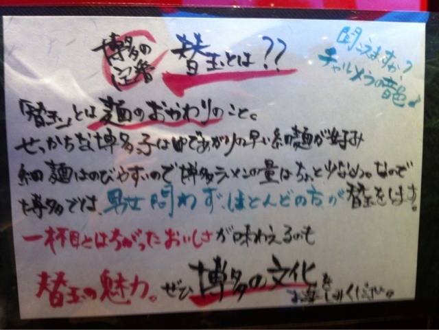 ここの醍醐味が、替玉制度、前のスイッチを押し手注文します。
