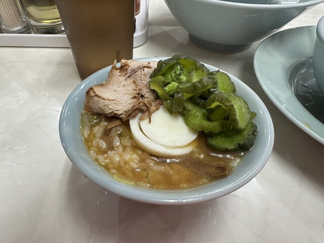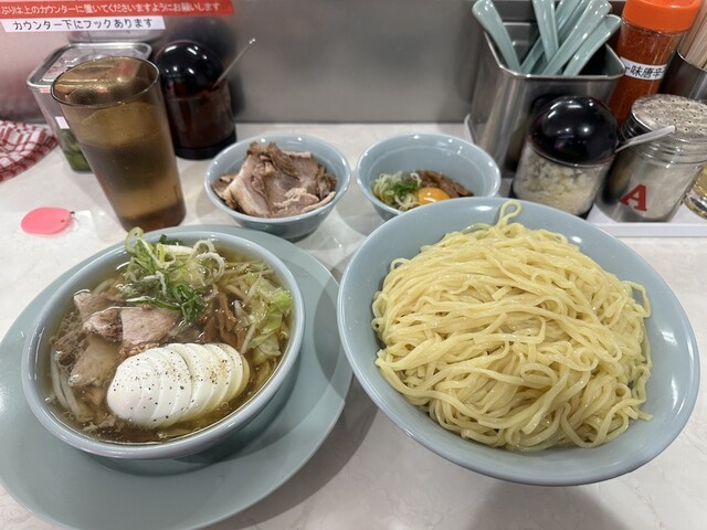 もり中華大盛り、チャーシュー100g、生卵、めし半分