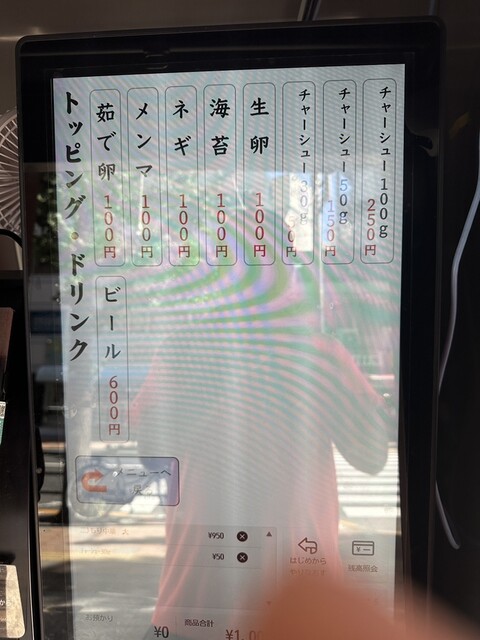 もり中華大盛り、チャーシュー50g、生卵、無料ご飯