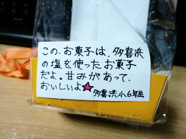 そんな塩にくわしい多喜浜小学生と新居浜の洋菓子店永久堂とのコラボ商品です。