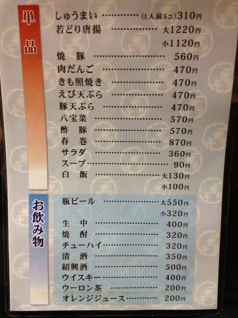 一芳亭は難波駅の近くにある小さな中華料理屋さん。オタロードをぶらぶらした帰りに寄ってみました。