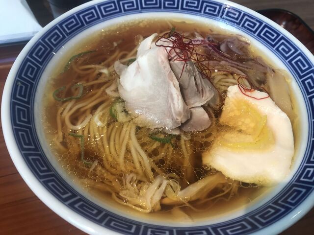 出てきた一杯は、澄み切ったスープが印象的。道産小麦使用自家製麺の麺は、結構量が多くてうれしい。スープは嫌な味がせず、安心していただける。チャーシューも美味しく、鶏のもも肉は思わずにんまりしてしまうお味。