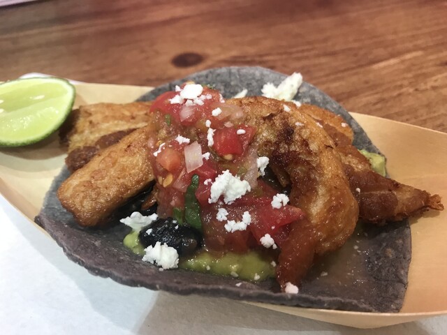 第4737日 ほろほろ豚バラ肉の素揚げと丹波の黒豆のタコス(チチャロンタコス)700円 (2025/04/18)