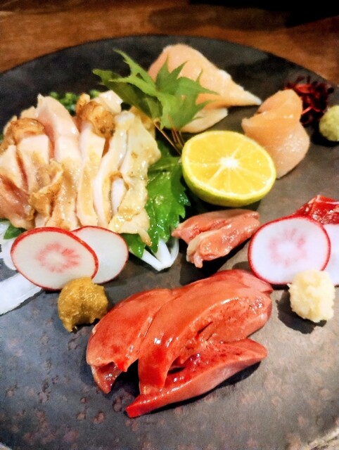 刺し身は新鮮で臭みがなく、キラキラしておりとても丁寧な職人技。串の一本一本も焼き加減が抜群で、特に手羽先はパリパリ...