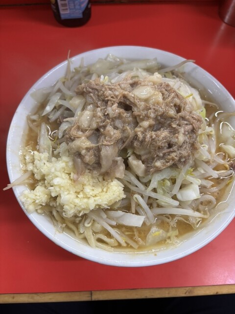 量もしっかりボリュームがあり食べ応えも充分。トッピングはニンニク、アブラ。アブラはほぐした肉も入っているので豚の食感も楽しめてお得感もあります。スープは乳化してドロドロ系で今まで食べてきた二郎の中ではかなり乳化度は強かったです。他でも言われていますがストロングスタイルの二郎らしい二郎を楽しめたいっぱいでした!