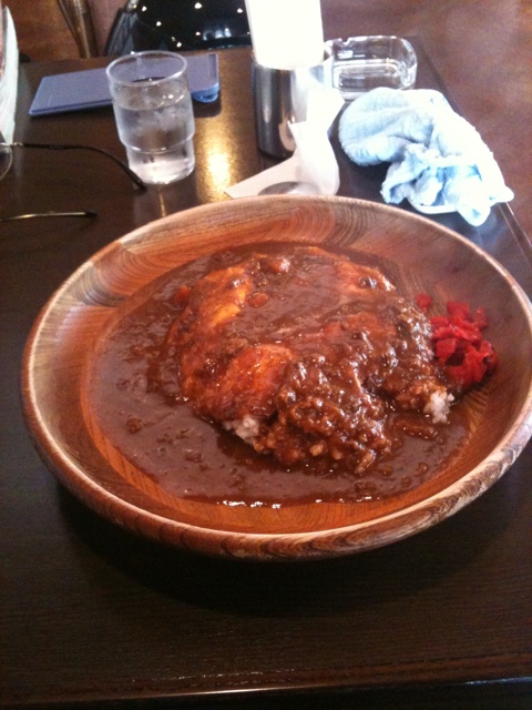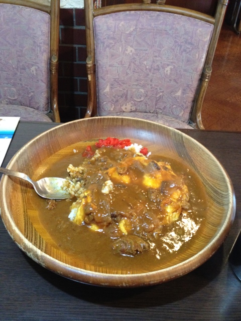 器が木作りで趣の有るカレーが出て来ました。深みの有る喫茶店とは思えないカレーでした。