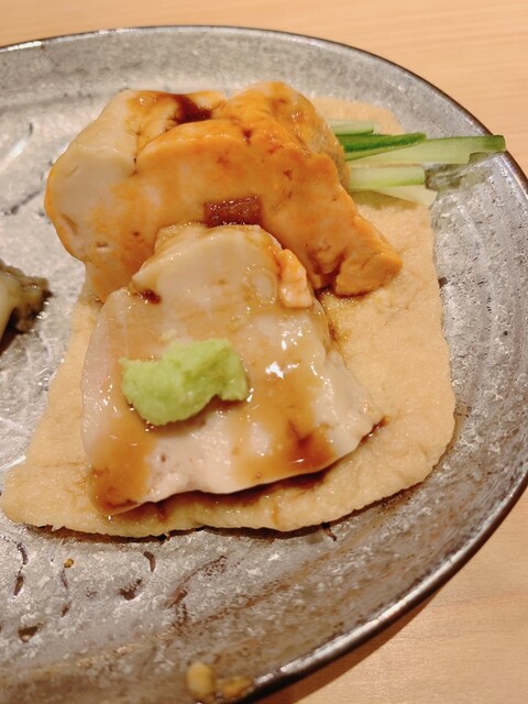 8鮑 あんきも 最初わさびそのあと揚げで包み