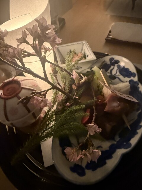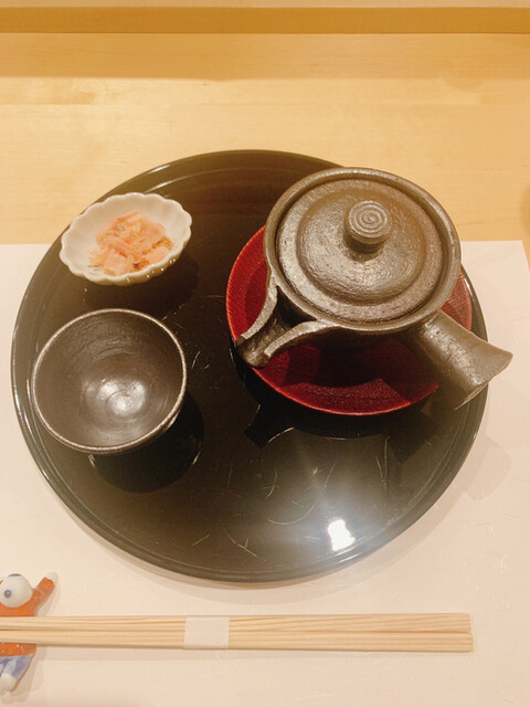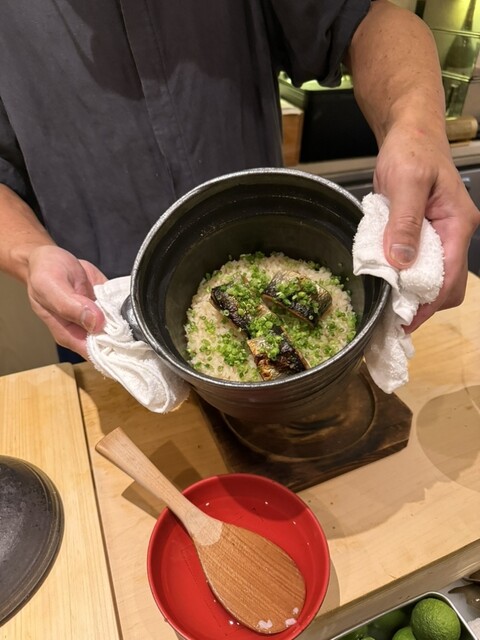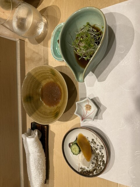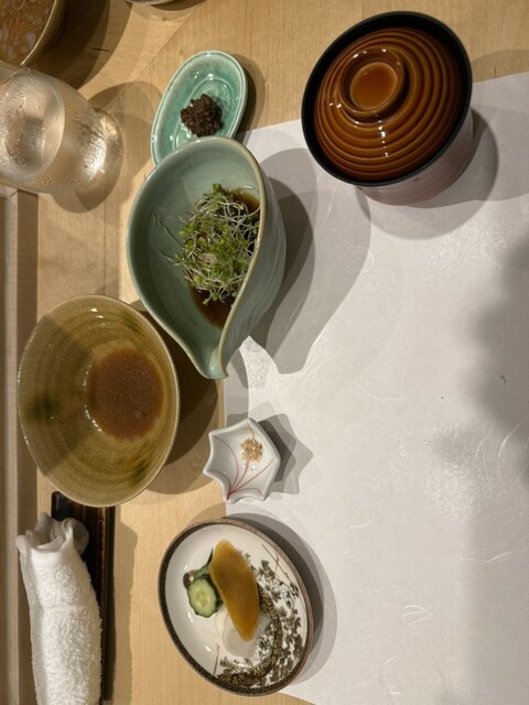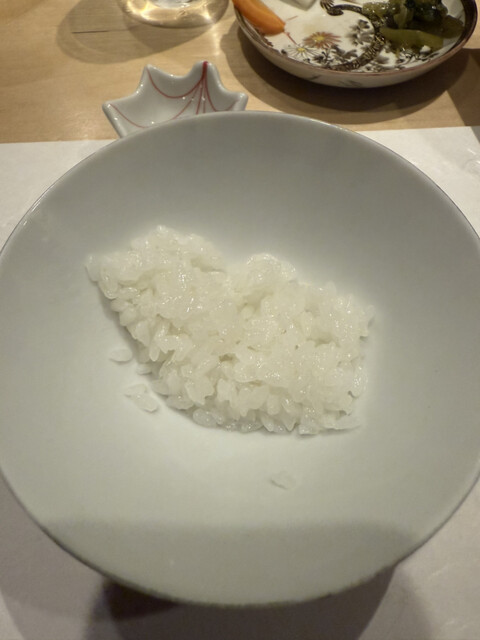 今回もお腹を温める昆布削り出しカツオを使った出汁から始まり、あんきも、桜エビともち米だしご飯、八寸、お造り、締めのご飯と小鉢、Opで自家製鮑の肝塩辛、品数たくさんに最後の釜炊き立てご飯は水分と芯があるとこから蒸らした部分のご飯迄堪能し3回おかわりいたしました。