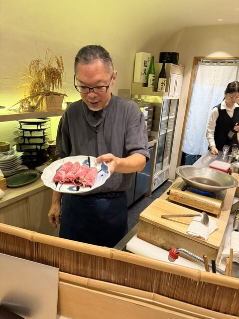 素材も礼文迄昆布を取りに行ったり、今回のすき焼きででた尾崎牛の生産者の元へ通って意思を通じ合い素材を使う 市場だけでは仕入れられない材料を自ら生産地迄行く拘り、味にもしっかり活かされてます
