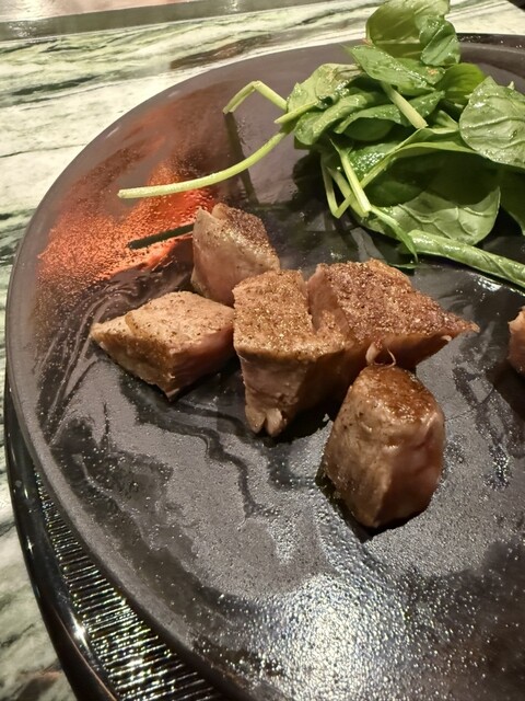 コースは えびのカクテルサワークリーム和えキャビアのせに始まり フォアグラ 鉄板のてっぱん蒸し焼きにトリュフクリーム ヒラメカルパッチョ お野菜焼き サーロインとフィレ 釜炊込みご飯 デザート迄最高に美味しいかったです。ご馳走様でした^_^
