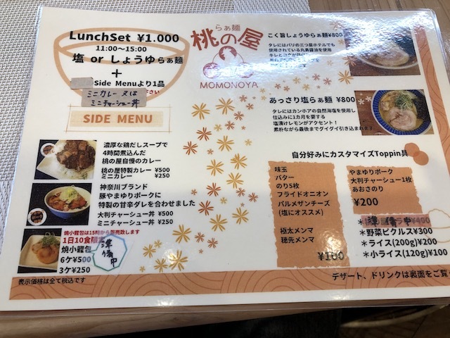味玉付きMOMONOYA SET(あっさり塩らぁ麺、今月のデザート(ほうじ茶プリン))