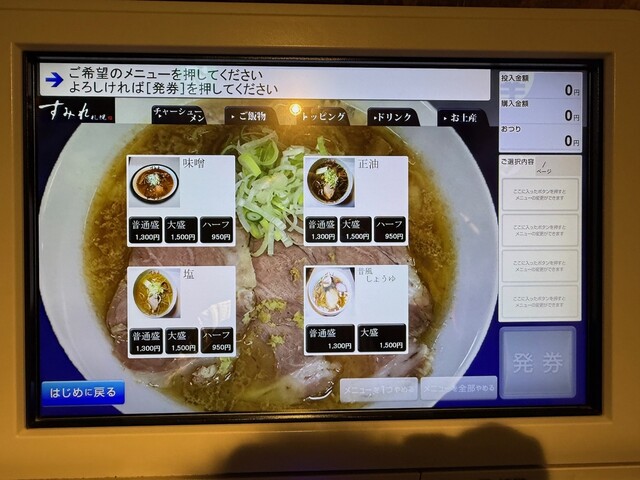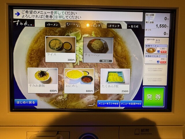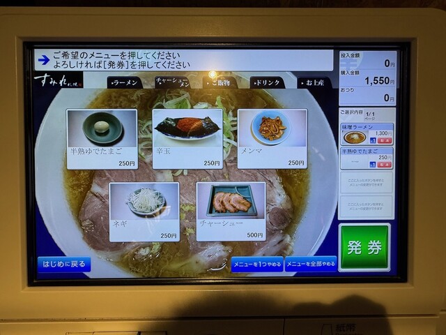 食券を購入し、店員さんに案内されて着席するスタイルです。満席の場合は、店内および店外に列びます。