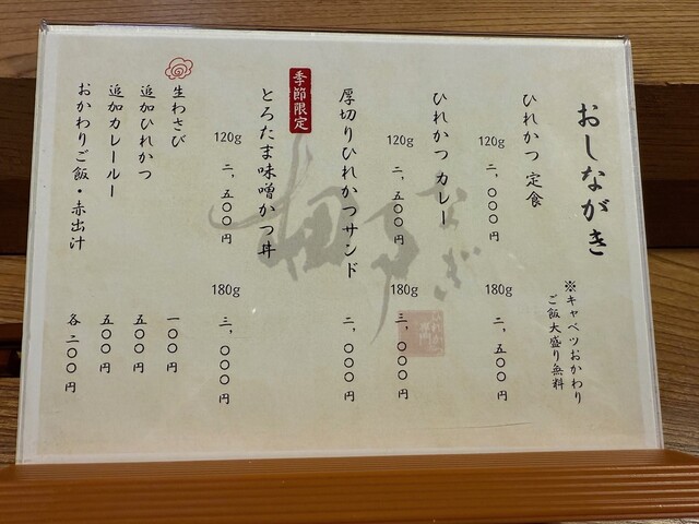 最初にひれかつ定食(180g)を注文しました。120gと180gから選択できますが、ひれかつの個数が2個と3個の違いみたいでした。
