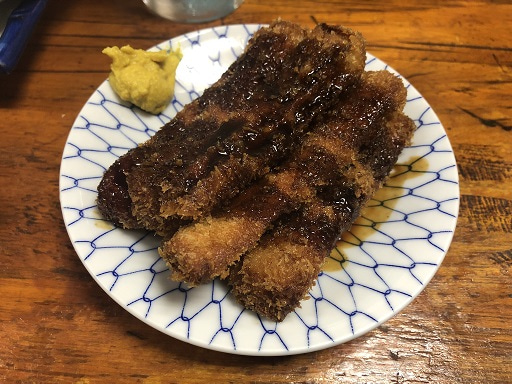 山積みになった「ちくわフライ」にも、心置きなくソースをぶっかける。