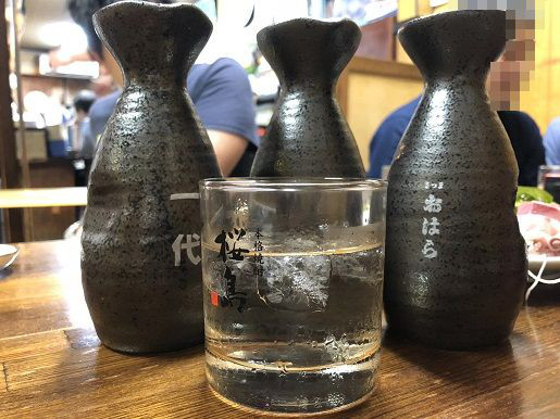 そのカウンター席の端っこに座って「芋焼酎(おはら)のお湯割り」を一本。