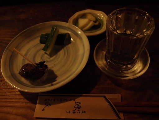 そんな酒燗器を前に、1杯目は漬物をアテにエビスビールなんぞを飲んでみましたが、この店は