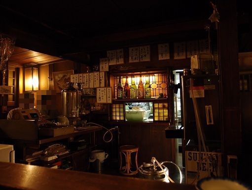 この日は店内カウンターの左奥、歴史を感じる調度品を間近に感じながらの晩酌となりました。