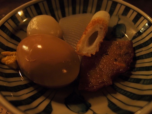 ツマミは「おでん」か「あさり汁」が選択できるとのことで「おでん」にしてみました。