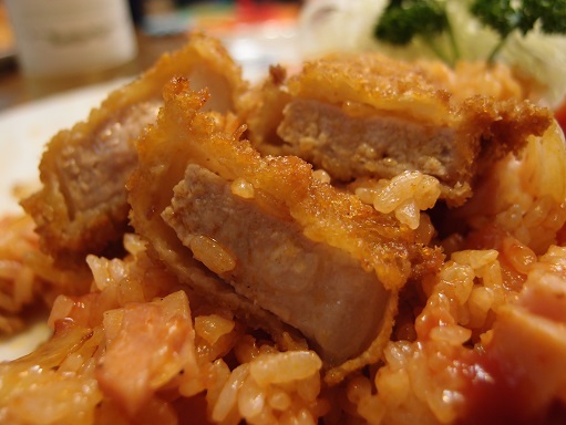 なんとケチャップライスの中からカツが顔を出しました。