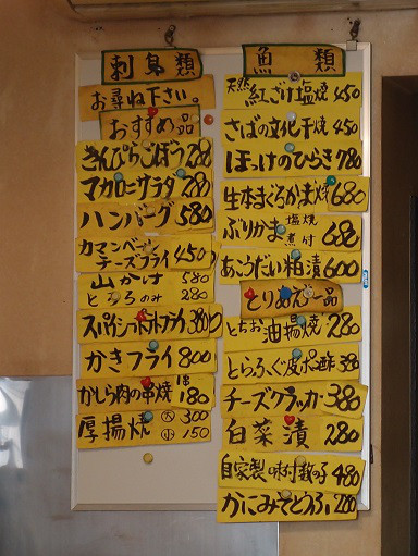 この日のお刺身類メニュー。