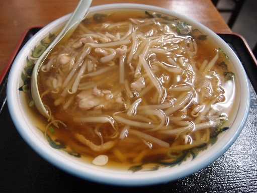 お店イチオシの「みたけラーメン」には目をくれずに「モヤシラーメン」をオーダーするヨメ。