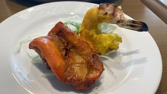 甘みがあるでっかいふんわりナンのおかわりも付いて、タンドリーチキン・タンドリーのエビも付いて1000円切ります…