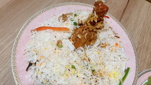 ビリヤニは一見さっぱりピラフのように見えますが、中にチキンとスパイシーソースが隠れています。