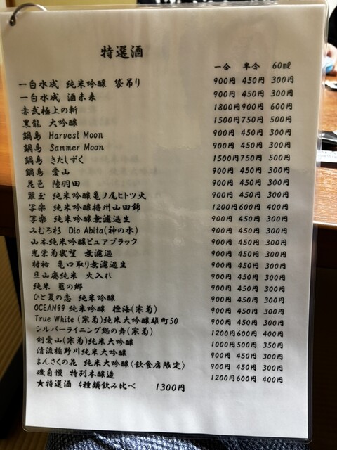 今日は宮城県の『日高見(辛口純米吟醸)』をいただきました。