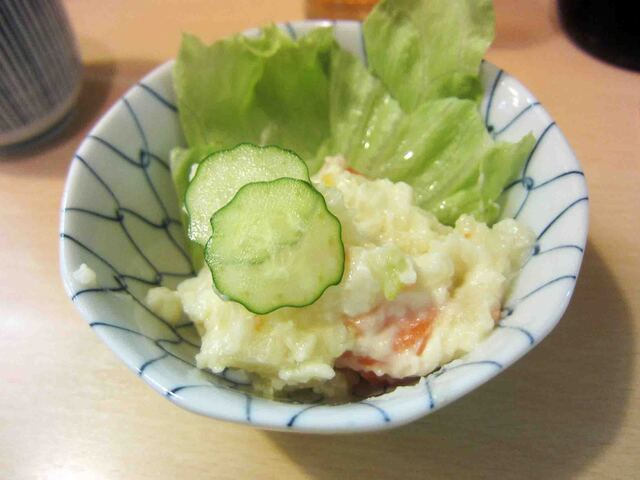 瓶ビールとほぼ同時に定食のポテトサラダがでてきました。