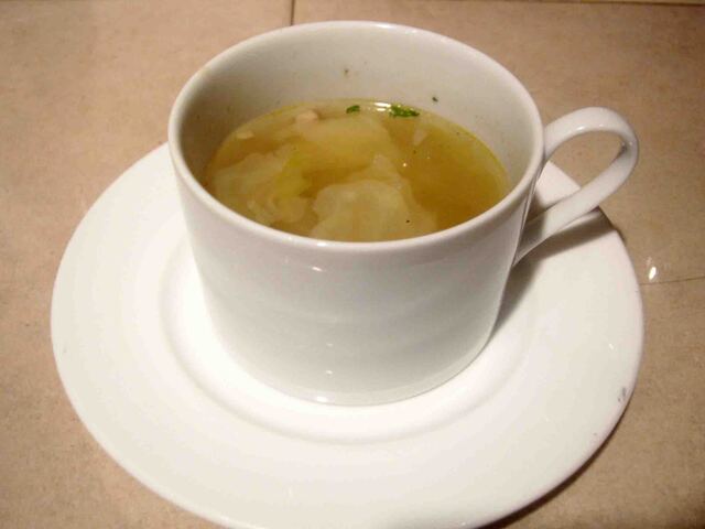 ランチについてきたスープは桜海老と姫キャベツのコンソメスープ