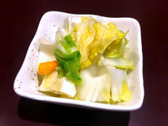 白菜のお漬物。浅漬けでなく、塩気が行き届いています。